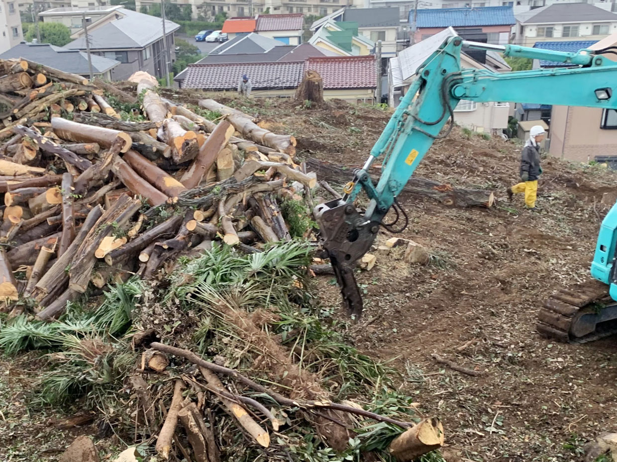 - 土地造成前の伐採作業